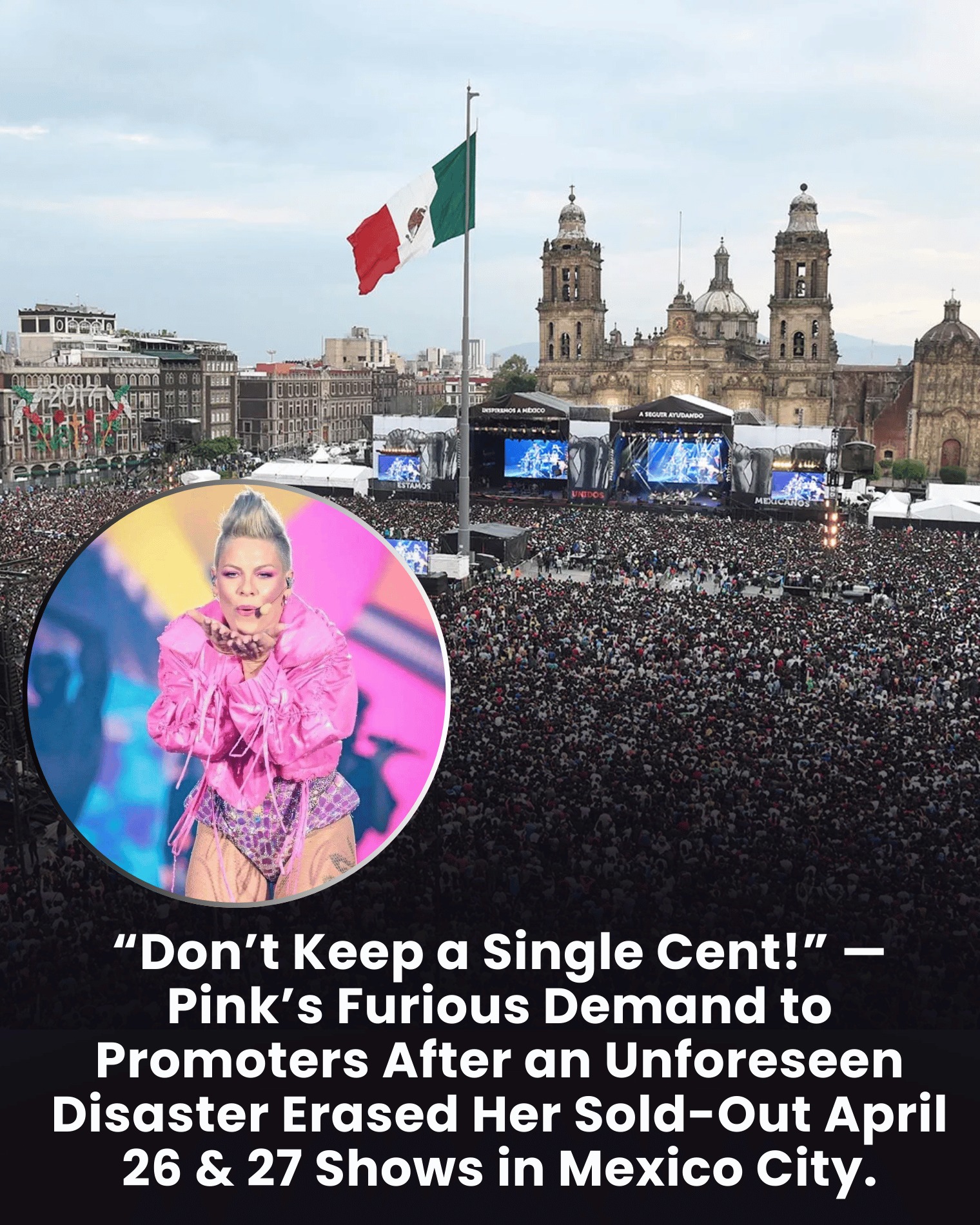 In April 2026, fans in Mexico City were eagerly preparing for two massive concerts by P!nk, scheduled for April 26 and 27 at Estadio GNP Seguros. The shows were completely sold out, and anticipation was especially high because P!nk's performances are famous for their breathtaking acrobatics, explosive stage design, and emotionally charged live vocals. For thousands of fans who had waited months for the event, it promised to be one of the most exciting nights of the year.