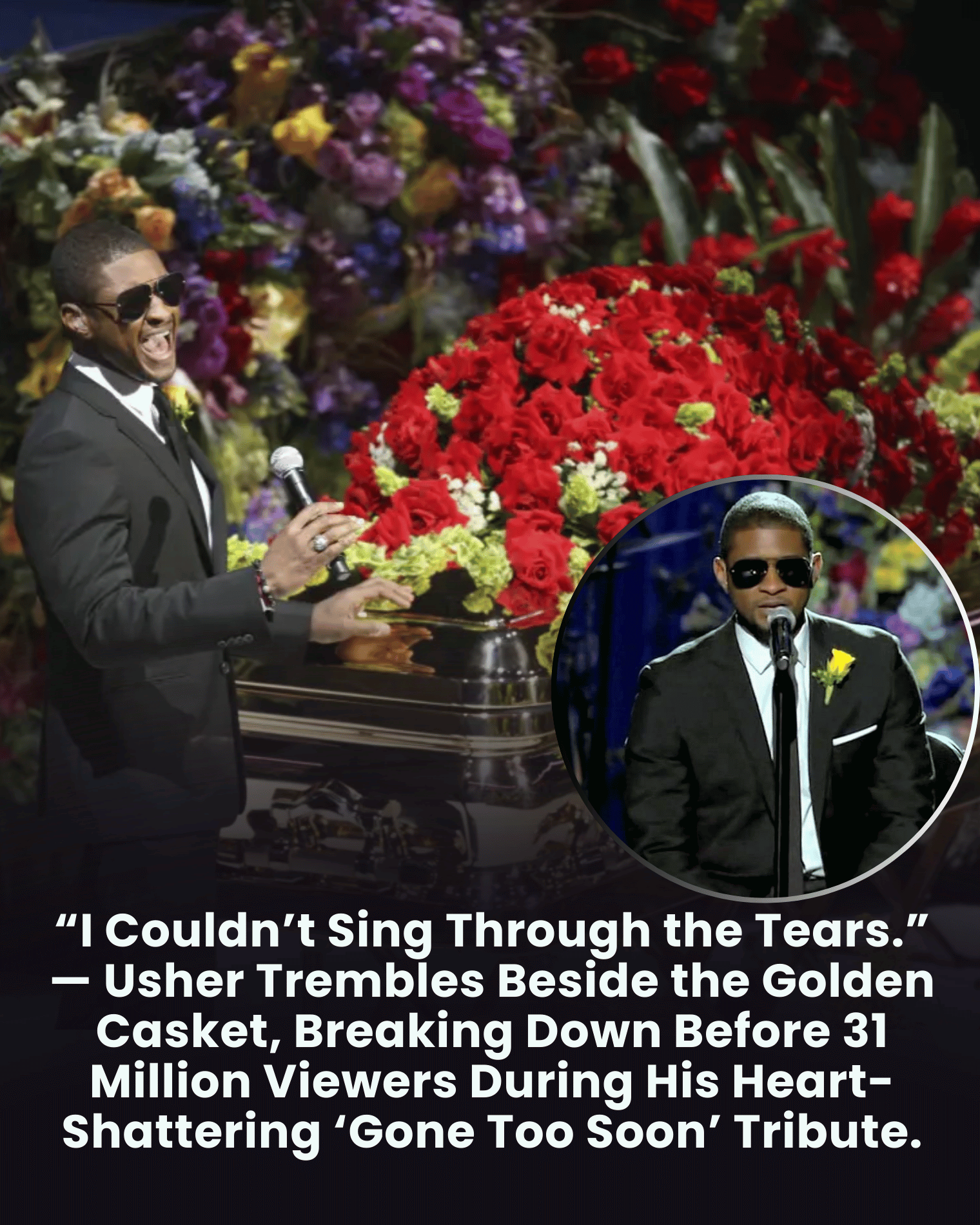 Midway through the song, Usher's voice cracked. The emotion of the moment overwhelmed him. Struggling to continue, he paused briefly while holding the microphone close, his composure visibly slipping. Behind his dark sunglasses, tears began to fall.